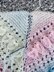 This blanket is knitted in 4 easy triangles and sewn together at the end. I would suggest blocking your pieces first.