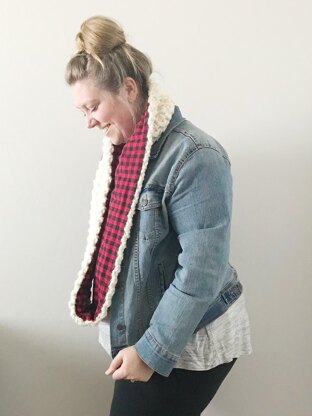 The Rowan Scarf is the perfect winter accessory. Made with bulky weight yarn and cozy flannel it’s sure to keep you nice and toasty. It works up quick and makes a great weekend project.