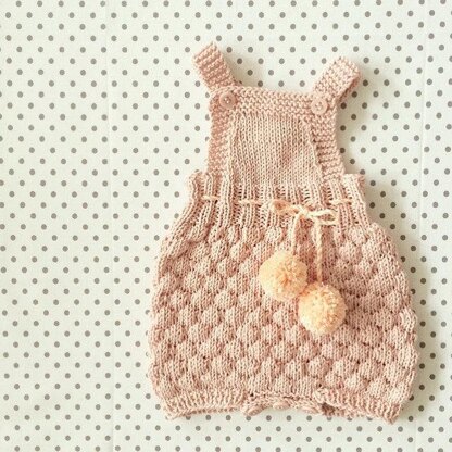 This romper suit is made in a simple design, with a few details to give the classy touch. The sailor bubbles below, the pom poms round the waist and the buttons high and low.