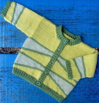 **The Seesaw ** is a baby and toddler cardigan that's knitted bottom up. The short rows (wrap and turn) make this an intermediate pattern, but adventurous beginners can have a go with plain sleeves. There are 5 sizes: 3 months to 3 years.