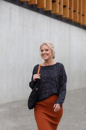 Forget complicated. We’ve gone minimalist with this relaxed fit, drop-shoulder sweater. Perfect for your first sweater or if you're craving a carefree knit with minimal seaming. The best part is that you can use either two 3-4 ply/fingering strands held double for a marled fabric, or just go for a straight 8 ply/DK weight yarn.