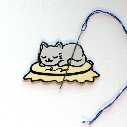 A cute little sleeping grey cat right on top of your embroidery hoop is the perfect minder for cat lovers. Curled up in the middle of your work is a typical place to find your feline friend. A sweet little minder would be great for cross stitchers, embroidery lovers, quilters or other fiber artists.