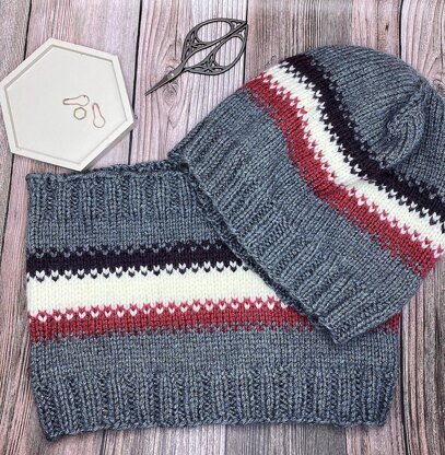 This worsted weight cowl and hat set is warm enough for winter, yet not bulky and heavy, perfect for springtime too, hence the name, Somewhere Between (Winter and Spring). This easy colorwork cowl and hat is a fantastic stash buster, you can pair any 4 colors together that you like, and because of the gentle transition between colors, you do not ever have to carry more than 2 colors across a row, making it an easy pattern to try for first time colorwork.