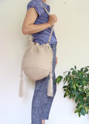A sack-shaped drawstring bag will perfectly complement any outfit, giving it a casual and boho look. Wear it as a long on-shoulder or cross-body purse. Worked spiral in rounds as a one-piece, this crochet bag is a quick and satisfying project.