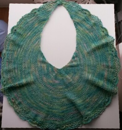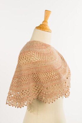 Crochet pattern for a topdown shawl, worked from the center out. By increasing row after row the shawl grows and gets larger.