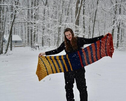 | One size only: | 80"/203 cm wingspan- 17"/43 cm deep (easily adapts with different yarn weights and yardages) |