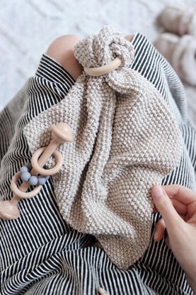 "Ultra cuddly and silky soft, The Twinkle Lovey features a delightful (and reversible) all-over texture that's oh-so-snuggly for baby. Secure a wooden ring or binky for extra comfort for your little one."