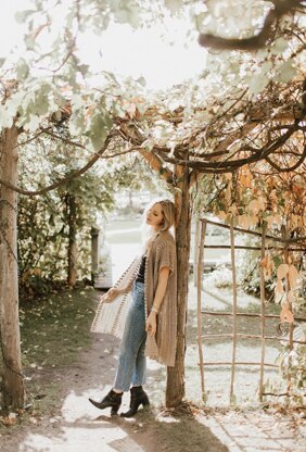 This garment is constructed from 2 identical rectangles partially seamed together, and includes instructions on how to add optional tie with tassel as well as belt loops.