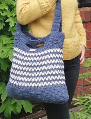 This stylish tote bag is crocheted bottom up in round using eco friendly chunky cotton yarn.