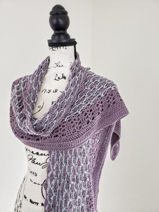Willow & Lark Ramble in Wisteria, 100% Merino Wool, 4 skeins, and Willow & Lark WoodLand, 50% wool, 25% Alpaca, 25% Viscose in Cirrus, 1 skein • Substitute for another lightweight yarn as desire, 735 yards total