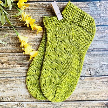 Gorgeous eyelet details trail effortlessly down the front of the sock, with a classic structure, making The Willow Socks a stunning and delightful pair of socks to knit. Detailed written instructions make this knitting pattern fun and easy to follow.