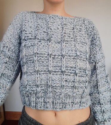 Chunky knit REVERSIBLE sweater, thick and cozy and perfect for colder weather -- drop shoulder style -- cropped body with long arms (can easily shorten or lengthen body or arms by changing # of rows -- available in sizes XS-5XL (model is 5'4" and wearing size XS)