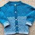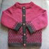 The Zandra cardigan is knitted top down with raglan sleeves. The two colour pattern uses slipped stitches so only one colour is used at a time. There are 8 sizes: 3 months to 8/9 years.