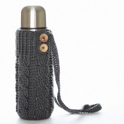 Pretty and practical - this cabled thermos cozy will help your beverages stay hot longer, and features an optional carry handle that easily buttons on and off.