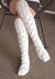 These socks are intended to be thigh-high, but with a few easy adjustments to the pattern, you can make them fit as over the knee socks, or simply knee-high. The socks are knit like a tube, with no shaping for the heel, so one size will fit most. You can also custom knit them to fit smaller or larger thigh sizes, so this truly can be a one size fits all. The socks are made using bulky weight (chunky knit) yarn and 4 double-pointed knitting needles, size 8 (5.00 mm).
