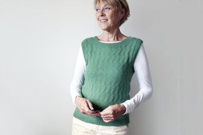 Introducing This Way Then That, a sport-weight vest, buttoned in the back this time, for some unexpected fun.I’ve been exploring simple textures lately. This design is worked overall in Vertical Zigzag Seed Stitch, a 7 stitch by 16 row repeat that inspired its name. Comprised of simple knits and purls over rows that repeat and shift, it’s easy to remember for a relaxing and meditative knit – just the kind I like. Enjoy!