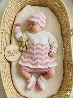 This pattern provides the instructions to make this beautiful 4 piece set. The top can be worn the other way around as a cardigan. It is knitted from the top down, so minimum sewing. giving it a seamless look. the short, hat and shoes perfectly compliment the outfit.