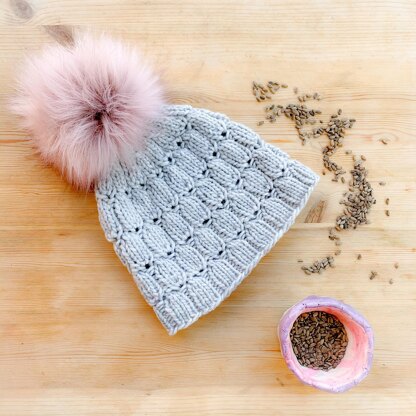 - A pom pom completes this hat!