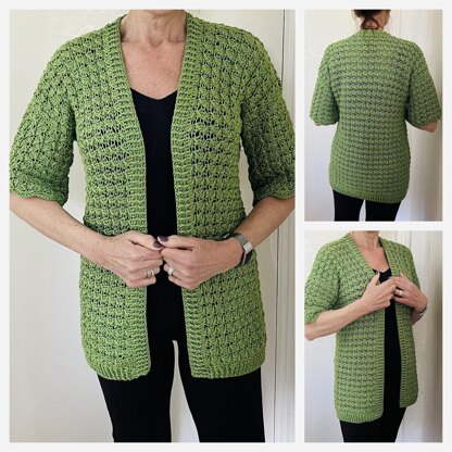 This beautiful lightweight cardigan that can be worn during the spring, cool summer nights and chilly fall days: THREE SEASONS CARDIGAN ;) This cardigan is crocheted sideways and therefore it's easy to adjust to the size you need. The stitches are your basic SC/ HDC and DC, so this pattern is suitable for all skill levels.