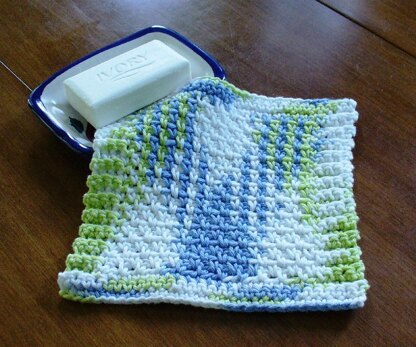 A simple cloth, used as part of a beginner crochet class at Shall We Knit? in Waterloo, Ontario, that allows crafters to explore a few single crochet variations and to practice chart and pattern reading.