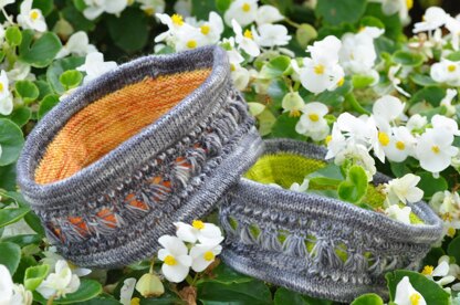 „Through Baroque Windows Headband“ ist ein Stirnband mit einem doppelt gestrickten Bündchen. Verwendet man im hinteren Teil des Bündchens eine Kontrastfarbe, scheint diese wunderschön durch das offene Lace-Muster, welches mich an Barocke Fenster erinnert, hindurch.