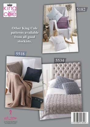 Throw & Cushions in King Cole Quartz Super Chunky - 5642 - Downloadable PDF is a Intermediate Knitting pattern by King Cole, available as a Downloadable PDF and includes instructions in English. Super fun to make, this pattern could be your next masterpiece!