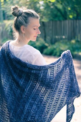 Throw this generous sportweight wrap around your shoulders for a lovely extra layer. Knit in luxe yarn from 2 stitches cast on at the tip, Throwing Shade features allover diagonal lace sweeping across a right triangle shape. Size: 104” length and 44” depth, customizable. Yarn: madelinetosh Pashmina (75% merino wool, 15% silk, 10% cashmere; 360 yards/329m/113g), shown in Composition Book Grey. Gauge: 18 st and 24 rows/4” in lace pattern, after blocking. Gauge is not critical for this project, however a different gauge may result in a smaller or larger finished shawl, and different yardage requirements.