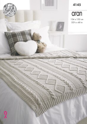 Throws in King Cole Big Value Recycled Cotton Aran - 4145 - Downloadable PDF