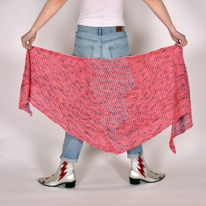 This shawl uses the shaping and colorwork properties of brioche stitch to create an image of lightning.