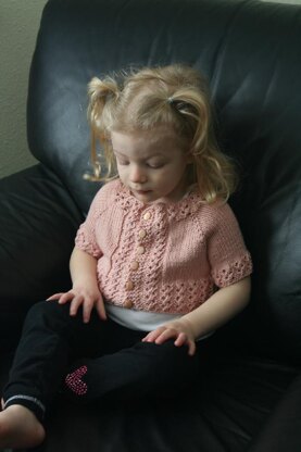 This is knit top down, with a lace/ribbed hem, edging and collar.