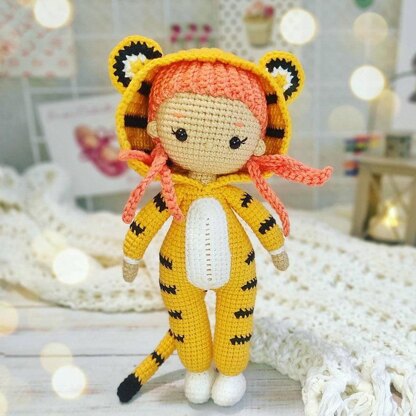 The pattern was tested. The size of the doll depends on the yarn used. Using 12wpi yarn and a 2.25mm (size B) crochet hook, the doll is approximately 18 cm (7 inches). The clothes and not removable. MATERIALS 1. Yarn: This example was crocheted with cotton yarn YarnArt Jeans (50g = 180yards / 165m, Sport, 12wpi). 2. Crochet hook: 2-2.5 mm (size B), or in accordance with the yarn you use. 3. One pair of black safety eyes 5 mm. 4. A small piece of contrast yarn or a stitch marker. 5. Fiberfill. 6. Black cotton thread to embroider the eyelashes. 7. Long needle. 8. Scissors, pins. This pattern is for personal use only. You may sell the finished toy you create with these instructions but you are NOT permitted to sell, copy, translate, share or distribute the pattern in digital or written form.
