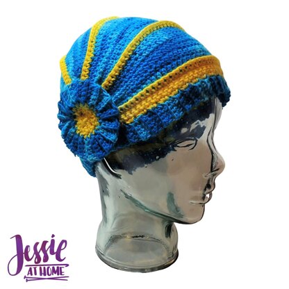 This pattern can be found for free online at jessieathome dot com/pattern/tiffany-flapper-capper/