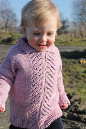A stylish high necked sweater, with a simple elegant lace panel. Knit with a DK base and sized from 18”-31” Tiffy is a feminine yet functional design. Tiffy features a lace panel around the sleeve to give it just that little something special.