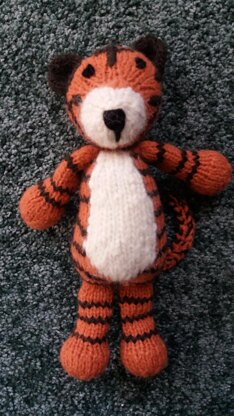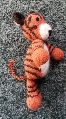 The tiger is fairly simple, using duplicate stitch (or Swiss darning) to add the stripes and optional spots on the backs of the ears. The white stomach is also optional, but I really like the look of the white stomach on the tiger.