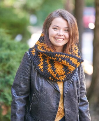 Leisure Arts Animal Prints Tiger Print Cowl Crochet ePattern- Inspired by fashion forward animal print this design will add a little wildlife to your wardrobe. Crochet cowl features an orange and black tiger print in a waistcoat stitch. Project calls for size 6 super bulky weight yarn and a US size M/N, 9mm, crochet hook. Includes step-by-step instructions, a colorwork chart and illustrated stitch guides. Finished cowl measures approximately 34"x 11". Easy skill level. Originally published in LEA7818 Leisure Arts Animal Prints Crochet Book. 10 pages, PDF download.