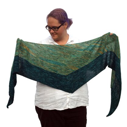 An asymmetric shawl, knit in simple garter stitch. Knit the first skein 'til it's all gone, then knit the second 'til it's all gone.