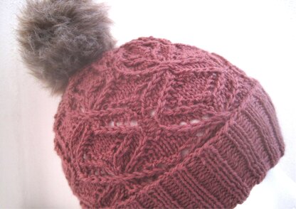 You don’t need to compromise on warmth and style with this beanie. A gorgeously intricate lace and cable pattern runs up to the crown where you can place an optional pom-pom.
