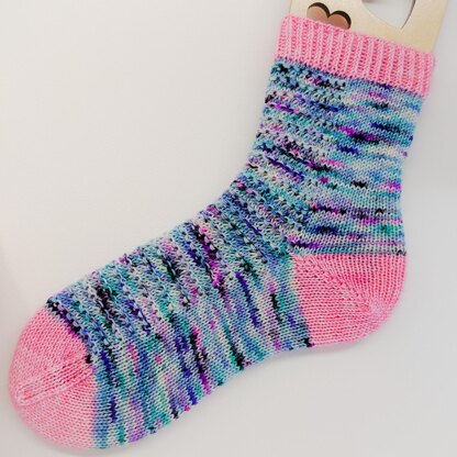 This is a “Pick ‘n’ mix” pattern. It’s a cuff down sock pattern that I have included directions for making ankle/regular socks or shorties, short row or heel flap & gusset and plain or patterned toe! That’s 8 variations in 3 sizes! The choice is yours!