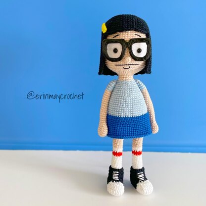 Bob's Burgers fans rejoice! Crochet your very own Tina Belcher with this amigurumi crochet pattern. This advanced pattern is worked using a 2mm crochet hook and sport weight yarn. Pattern includes step-by-step instuctions with photos to crochet Tina, along with insructions for creating her glasses.