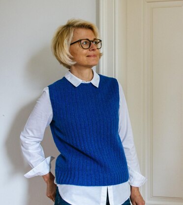 Tindersticks is a nice mix of classic and casual, with little details like the edging at the armhole, which is knitted with short rows. The slipover is worked in one piece from top to bottom, only the edging needs to be done. The front pattern is not cables or crossed stitches, but stitches knitted together. Very simple!