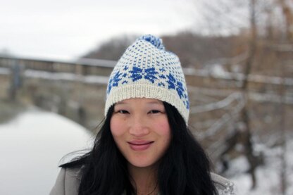 Celebrate winter with this modern take on the traditional 2-color Norwegian star pattern. The main body of the hat is worked in an easy lice pattern that functions as a breather between the stars and the crown decreases. The hat shaping creates flower shape at the crown. This pattern comes in 3 adult sizes. This pattern was tech edited by Joeli Caparco.
