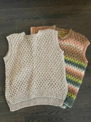 This vest is knitted fourth and back and in the round.