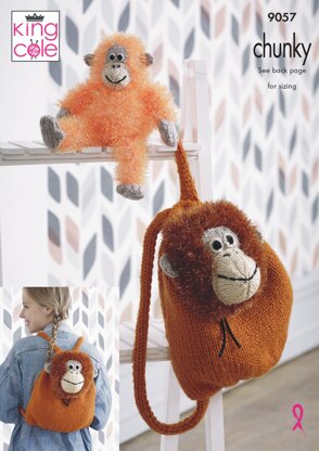 Tinsel Orangutan Backpack & Toy in King Cole Tinsel Chunky & King Cole Big Value Chunky - 9057pdf - Downloadable PDF is a Intermediate Knitting pattern by King Cole, available as a Downloadable PDF and includes instructions in English. Super fun to make, this pattern could be your next masterpiece!
