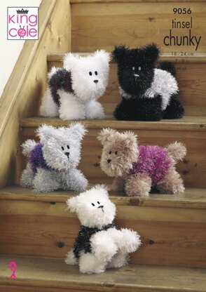 Tinsel Westie Style Dogs in King Cole Tinsel Chunky - 9056pdf - Downloadable PDF is a Intermediate Knitting pattern by King Cole, available as a Downloadable PDF and includes instructions in English. Super fun to make, this pattern could be your next masterpiece!