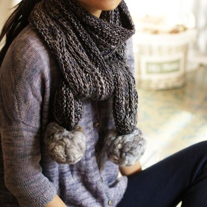 Get snuggled up in this cuddly soft scarf for the chilly winter days and cherish this woolly season with these extravagant roving pompoms. This scarf can be worked up quickly in bulky weight yarn.