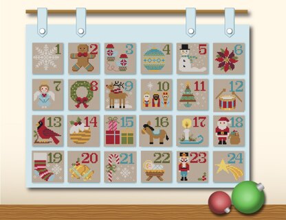Make this festive and fun calendar to decorate your home for the holidays. Each square will stitch up in an evening! Stitch them up and create a one-of-a-kind Christmas calendar or stitch the motifs separately to make little gifts or cards. \nPattern Specs: \nStitch Count: 166w x 199h\nDesign Area: 12" x 14" (14-count) or 10.5" x 12.5" (16-count)\nStitches used: Cross Stitch, Backstitch\nModel was stitched over 2 on 28-ct linen in "Touch of Grey".\n\nThis printed pattern comes with:\n- Easy to read Full-Color Grid Pattern\n- Basic Directions\n- DMC & Anchor Color Key\n- Finished image(s) to use as a guide\n\nFor beginner cross stitchers, check out our guide on how to cross stitch!
