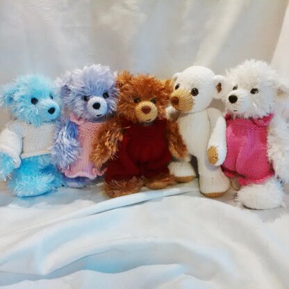 Also included in this pattern are all the outfits you see Titch wearing. These are knit in double knit. There is a step by step guide to help you create your lovely bear and outfits.