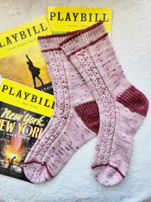 These socks are inspired by one of my favourite TV shows: The Marvelous Mrs Maisel and Season 5 releases April 14, 2023. Miriam and Susie are both strong, hilarious women who form a unique relationship in the early 1960s in New York. They use the phrase Tits Up to encourage each other to be brave and fearless. When we put our tits up, our shoulders come back and we feel the power to be strong cheerleaders for ourselves and the women in our lives.