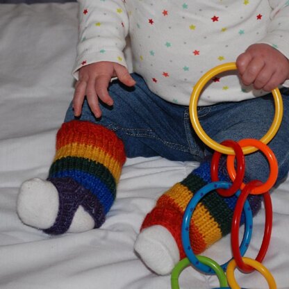 These colourful legwarmers are a perfect extra layer for your little one during the colder months. They have a nifty little foot stirrup to help them stay put. Especially helpful for wriggly babies and little crawlers.