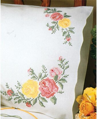 Tobin Stamped Pillowcase Pair 20in x 30in Rose Embroidery Kit